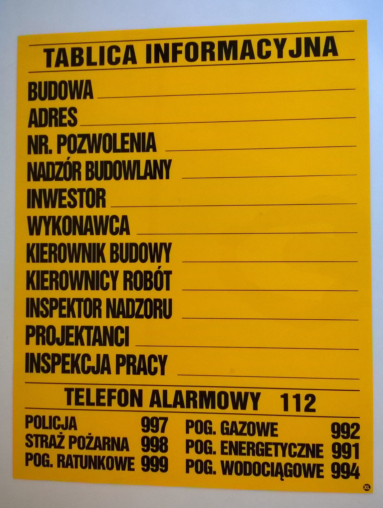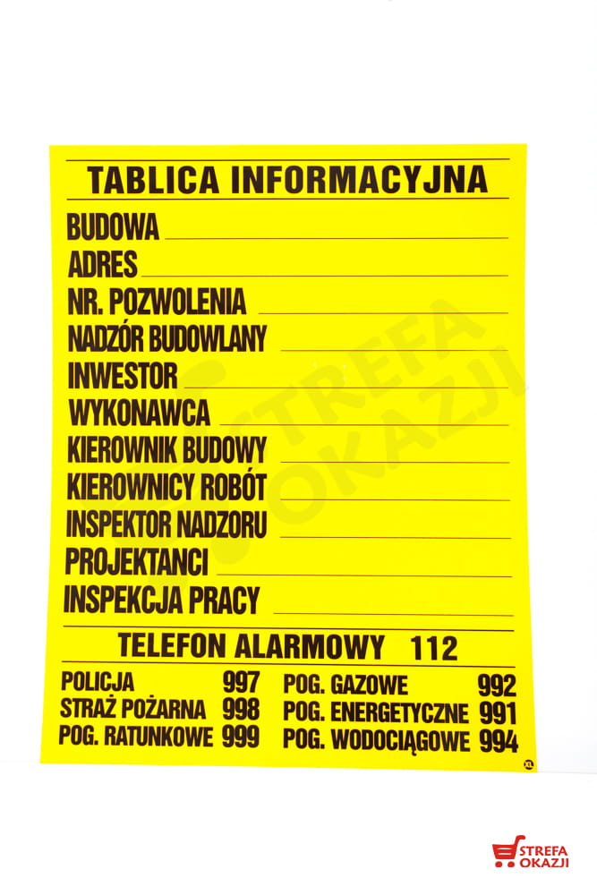 LEM TABLICA INFORMACYJNA BUDOWLANA 90X70 CM