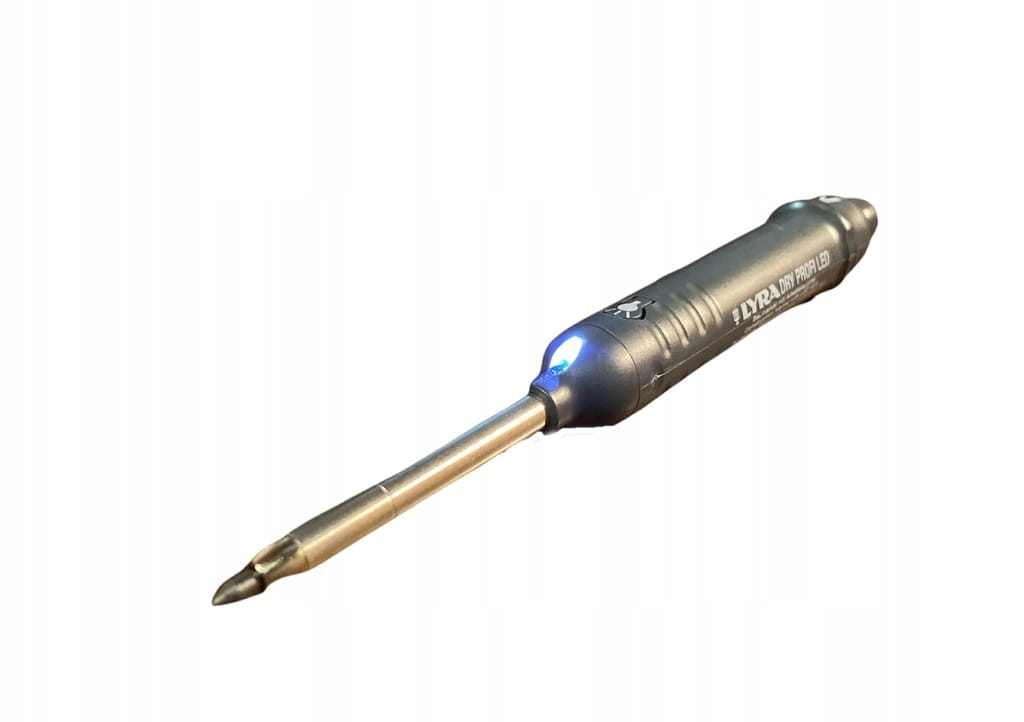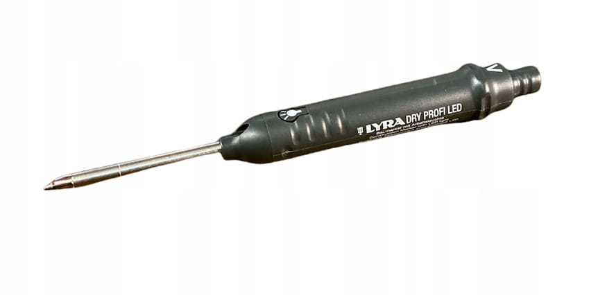 Ołówek budowlany do zaznaczania otworów DRY PROFI LED: L449430 z diodą LED. Pisze po płytkach i szkle. Wbudowana temperówka Ołówek budowlany dla profesjonalistów! Obowiązkowy element w pracy stolarza. Marker do oznaczania otworów marki Lyra ma wszystkie praktyczne funkcje i cechy, jakie powinien mieć profesjonalny ołówek. Ołówek jest wyposażony w diodę LED, która przydaje się podczas pracy w kiepsko oświetlonych miejscach. W zestawie baterie pastylkowe typu LR41 do oświetlenia – 3 sztuki. Długa, 40-mm końcówka powoduje, że łatwo można dotrzeć przez wspornik, np. do otworu na śrubę. Ołówek jest w zestawie ze sztyftem grafitowym typu 2B. Sztyft wysuwa się po naciśnięciu na rurkę ze stali nierdzewnej. Ołówek pisze po większości powierzchni, np. po drewnie, metalu, glazurze, klinkierze czy szkle. Pozostawia ślad nawet na zabrudzonych czy tłustych powierzchniach. Duża obsadka ma klips na pasek, aby móc łatwo umocować go do spodni czy kieszeni. Wbudowana temperówka.