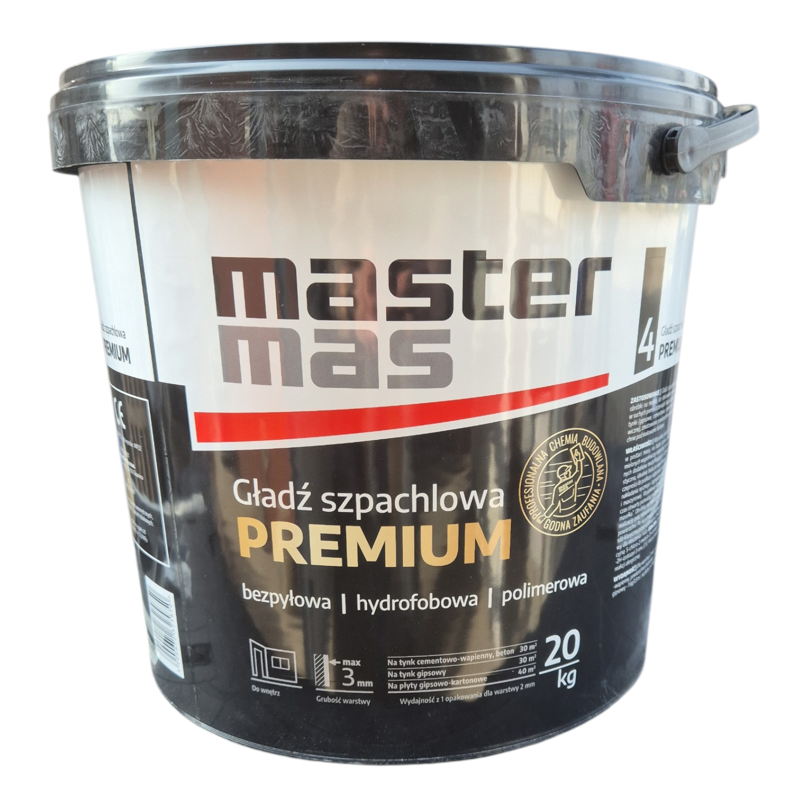 Gotowa do użycia gładź szpachlowa MASTER PREMIUM jest powłoką oddychającą i paro przepuszczalną stworzoną na bazie minerałów drobno mielonych. Zachowuje właściwości użytkowe i formę pasty przez 12 miesięcy od daty produkcji. Jest plastyczna i idealnie biała po wyschnięciu, dzięki czemu wystarczy ją pokryć jednorazowo warstwą farby. Udoskonalona formuła pozwala na bardzo łatwą aplikację produktu na ścianę – „efekt masełka”. Nakładanie masy jest proste (pacą lub szpachelką ze stali nierdzewnej), nie wymaga specjalnych umiejętności. Masę MASTER PREMIUM możemy również obrabiać na mokro za pomocą spryskiwacza i gąbki. Powierzchnię pokrytą MASTER PREMIUM można obrabiać po upływie 30 minut w temperaturze 20-25 °C od momentu nałożenia jak również po upływie jednego lub kilku dni.