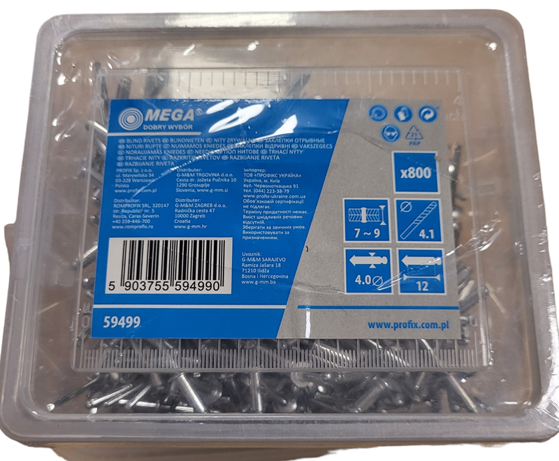 MEGA NITY ZRYWALNE ALUMINIUM/ STAL 4,0 x 12 MM 59499
