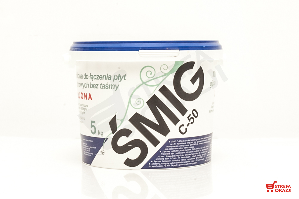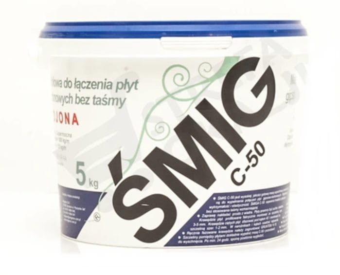 Śmig C-50 jest wysokiej jakości gotową masą szpachlową przeznaczoną do wypełnienia połączeń płyt gipsowo kartonowych. Wysoka wytrzymałość i elastyczność zapewnia trwałość połączeń bez stosowania taśmy wzmacniającej.