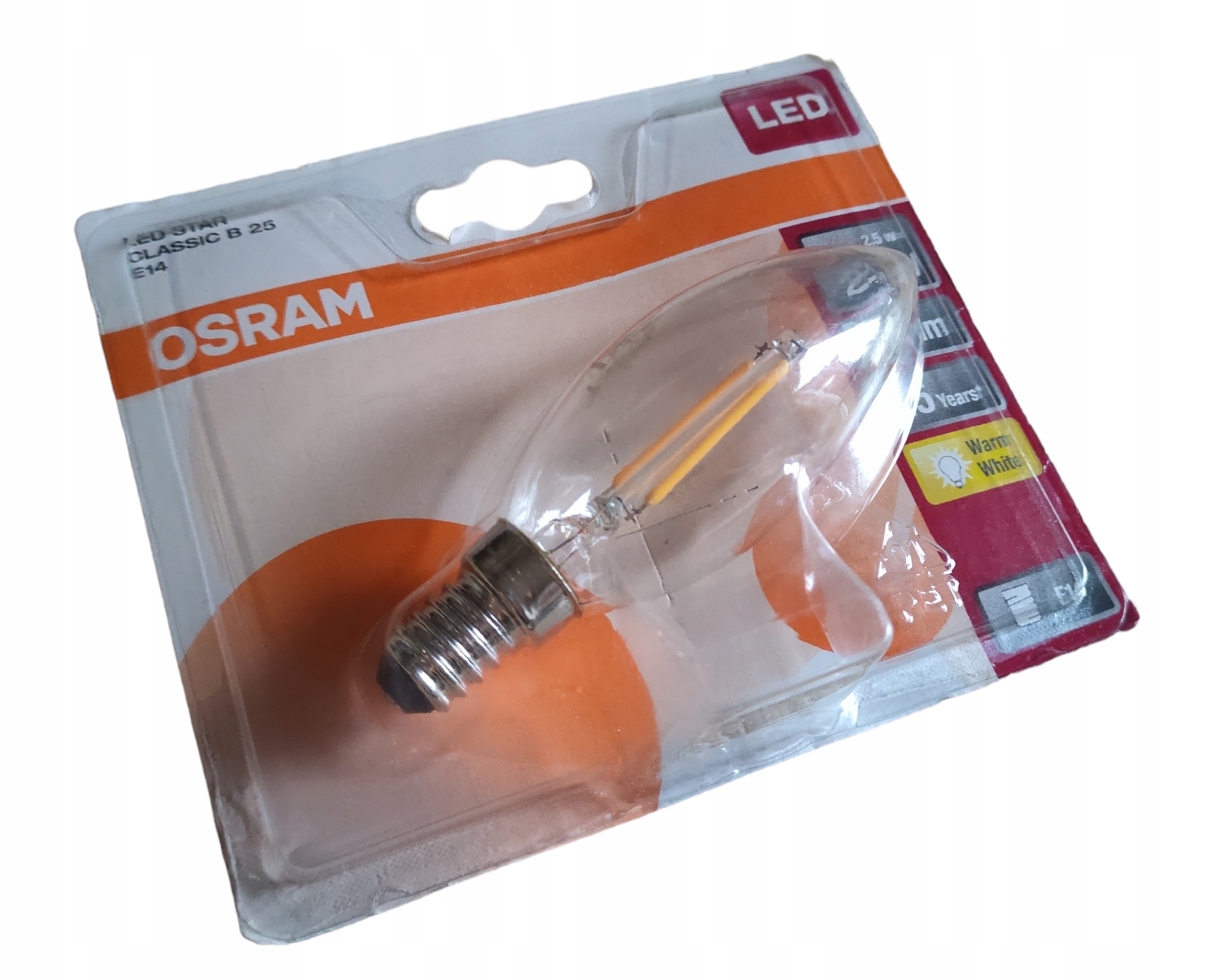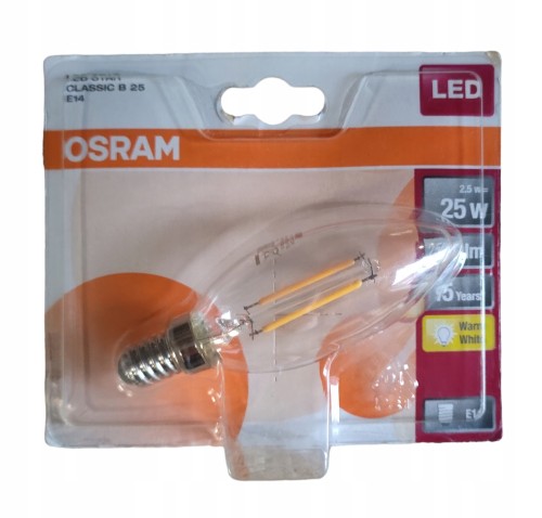 Żarówka z żarnikiem LED, kształt: świeca, przejrzyste wykończenie, E14, 2.5 W (ekwiwalent 25 W), klasa A+, światło białe ciepłe, 2700 K