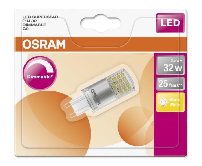 Żarówka LED SUPERSTAR PIN G9 DIM, ściemnialna 3,5W = 32W, 2700K, Osram