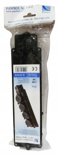 Listwa rozgałęźnik do przedłużacza 4-gniazda z/u gumowe czarne IP44 D.3159/4 PAWBOL