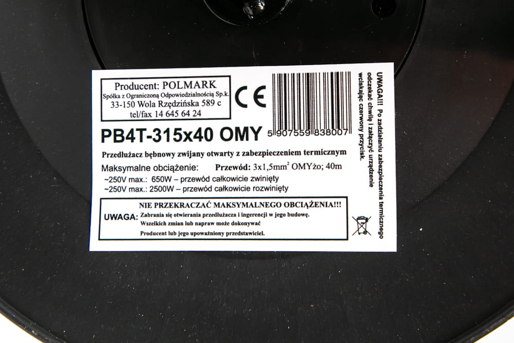 POLMARK PRZEDŁUŻACZ BĘBNOWY ZWIJANY OTWARTY Z ZABEZPIECZENIEM TERMICZNYM 40M