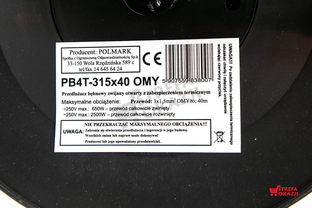 POLMARK PRZEDŁUŻACZ BĘBNOWY ZWIJANY OMY PVC 40M