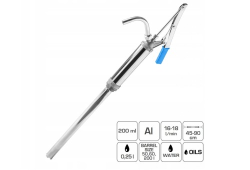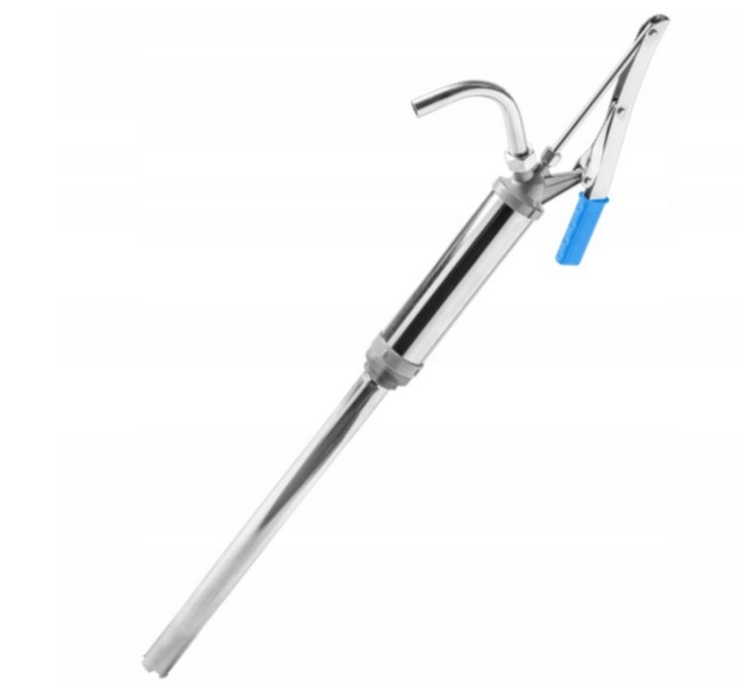 Profesjonalna pompa ręczna przeznaczona do pobierania substancji płynnych przechowywanych w beczkach.