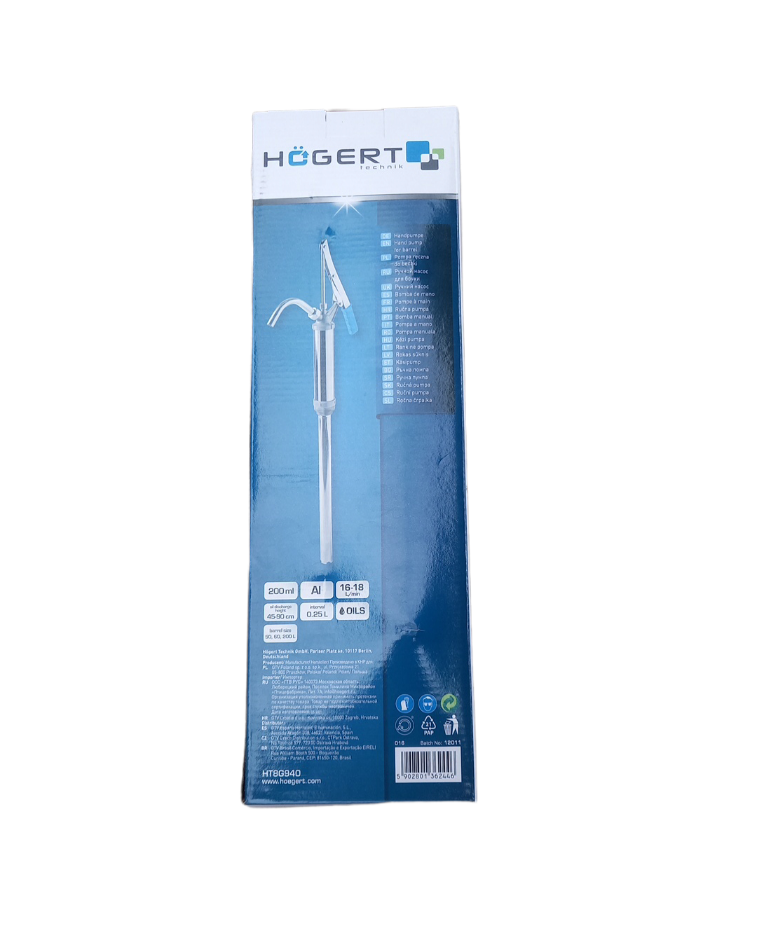 POMPA RĘCZNA OLEJU DO BECZKI POMPKA HOGERT HT8G940