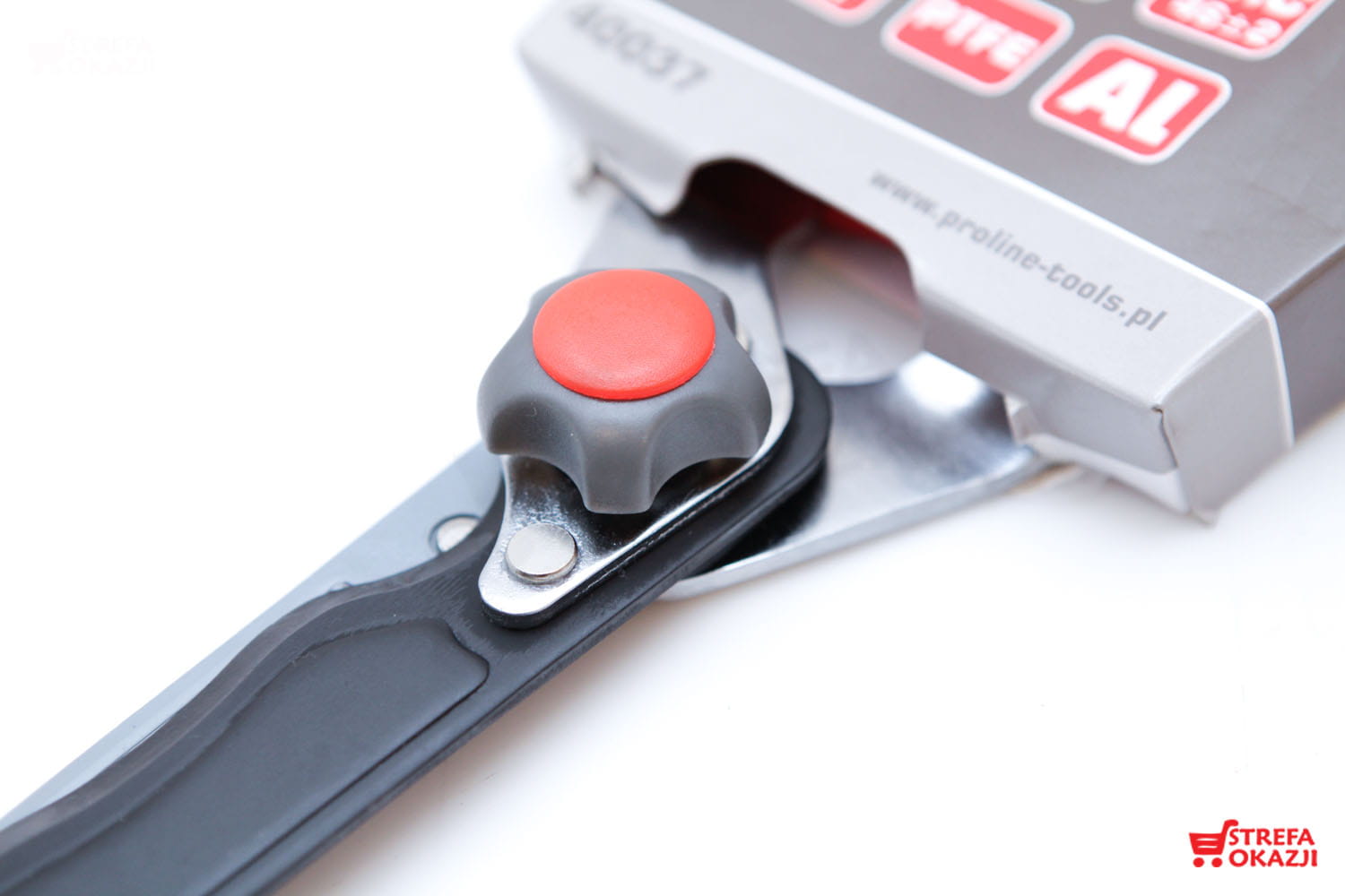 - Regulacja docisku ostrzy dzięki specjalnej śrubie dociskającej pozwala ustawić części robocze w optymalnym położeniu i zminimalizować zbędne tarcia, a tym samym wydłużyć czas bez serwisowej eksploatacji