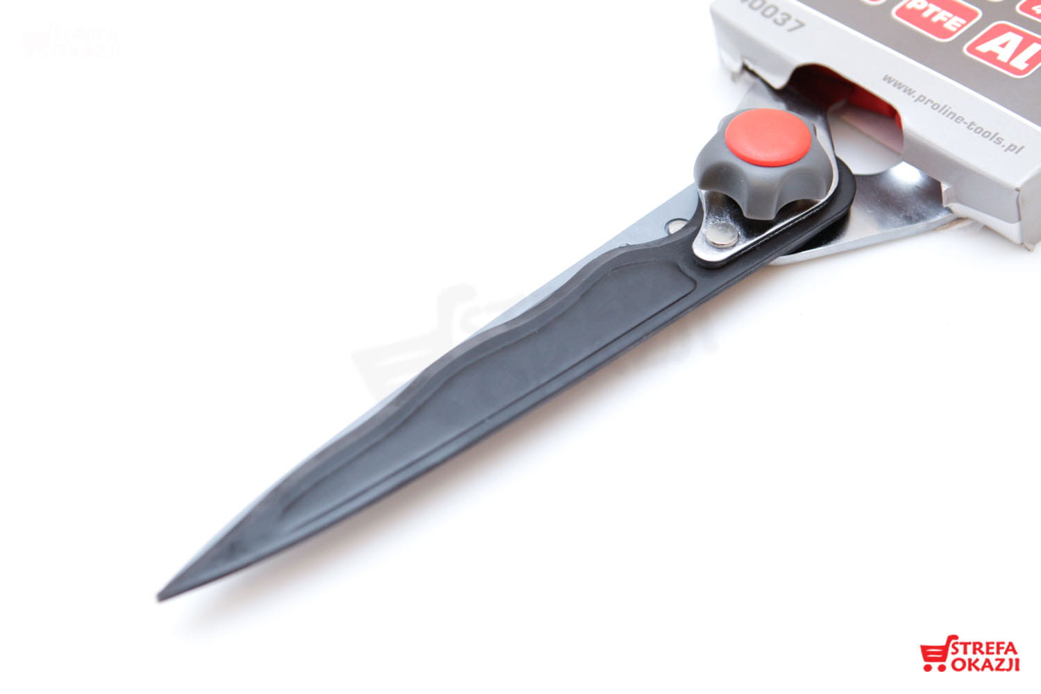 - Dodatkowo ostrze zabezpieczone powłoką teflonową, co sprawia, że sok czy żywica nie przyklejają się do powierzchni