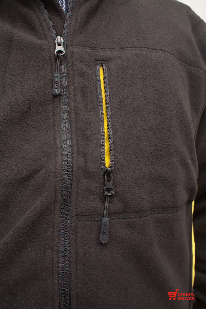 Ciepła bluza polarowa od PROLINE LAHTI PRO z możliwością nadruku własnego logo, na przedniej i tylnej części bluzy z technologią znakowania termotransfer flock w kolorze białym + istnieje możliwość nadruku w innym kolorze, tylko na specjane zamówienie klienta po ówczesnych jego uzgodnieniu. Logo będzie zamieszczone na przedniej i tylnej części bluzy polarowej o maksymalnych wymiarach formatu A4+A6. (A4 tył +A6 przód)