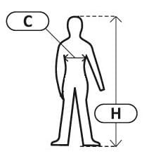 (H – wysokość, C – obwód klatki piersiowej)