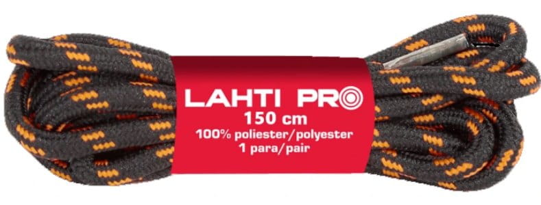 Sznurowadła wyprodukowane ze specjalnie selekcjonowanych włókien poliestrowych o średnicy 4mm. Wzmocnione rdzeniem odpornym na przecieranie oraz zrywanie, charakteryzują się bardzo długą żywotnością. Sznurówki są odporne na wilgoć oraz ciężkie warunki w kolorze czarno-pomarańczowym o długości 150 cm.