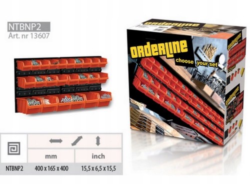 Tablica Orderline NTBNP2 to uniwersalna i użyteczna tablica narzędziowa, którą można zawiesić na ścianie w domu, garażu, warsztacie czy sklepie. Łatwy montaż pojemników na tablicy pozwala na dowolne przemieszczanie ich w zależności od potrzeb. W każdej chwili można też pojemnik zdjąć, by uzyskać dostęp do zawartości.