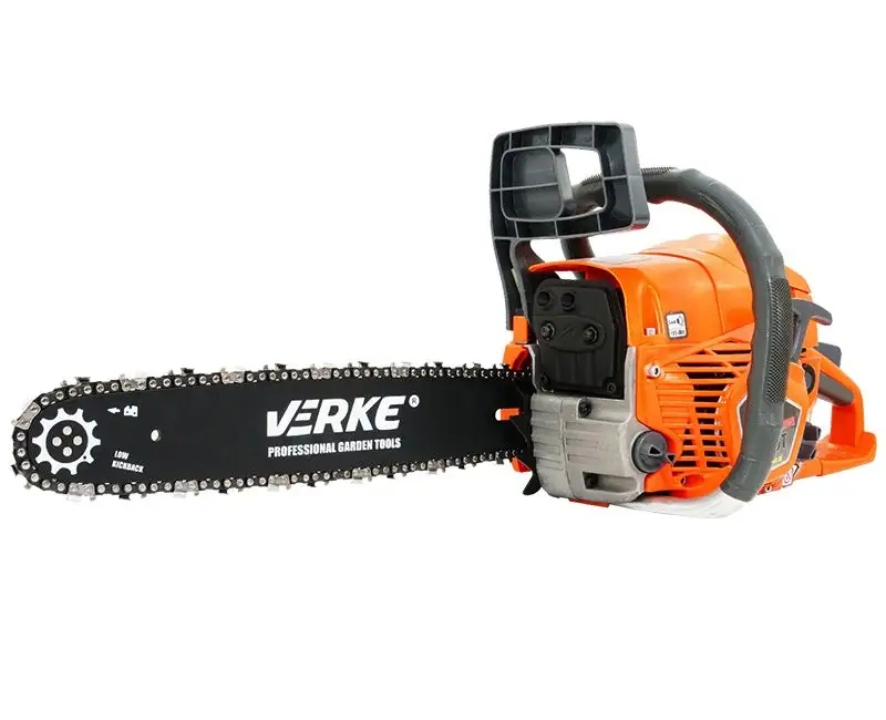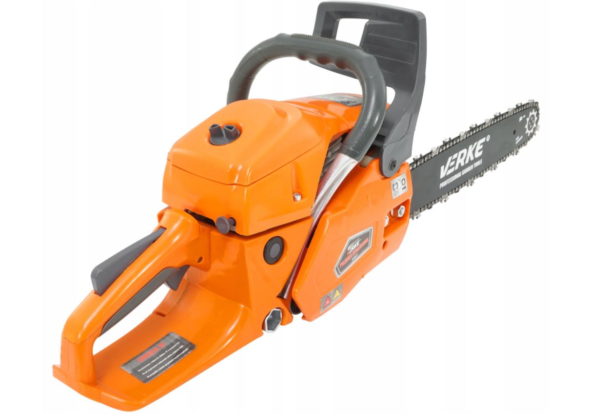 Pilarka spalinowa VERKE CS65-T, z dwusuwowym silnikiem o mocy 4,35 KM i pojemnością 65 cm³. Idealnie sprawdzi się podczas cięcia zarówno drzewa opałowego, małych i średnich drzew oraz prac budowlanych. Komfort pracy zapewnia antypoślizgowa rączka, świetne wyważenie i ergonomiczny kształt urządzenia. Piła posiada system natychmiastowego zatrzymania łańcucha, co wpływa na bezpieczeństwo. Automatyczna pompa oleju z możliwością regulacji sprawia, że do łańcucha dostarczana jest odpowiednia dawka oleju przez cały cykl ciecia. Pilarka łańcuchowa została zaprojektowana przy zastosowaniu najwyższej klasy technologii i gwarantują najlepsze parametry w swojej kategorii. Pozwala na osiągnięcie maksymalnych wyników bez wysiłku i w znacznie krótszym czasie. Szybki dostęp do filtra powietrza zapewni łatwe czyszczenie lub wymianę filtra. Wygodne uchwyty oraz szybki, system hamowania zapewniają doskonała kontrolę w każdym momencie pracy.