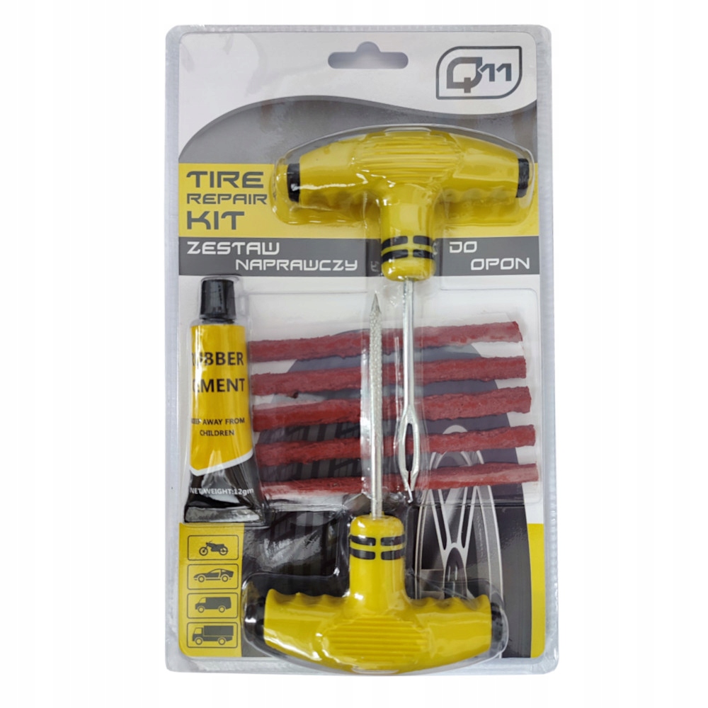 Zestaw naprawczy Q11 przeznaczony do szybkiej naprawy opon bezdętkowych samochodowych, motocyklowych, ciężarowych itp.