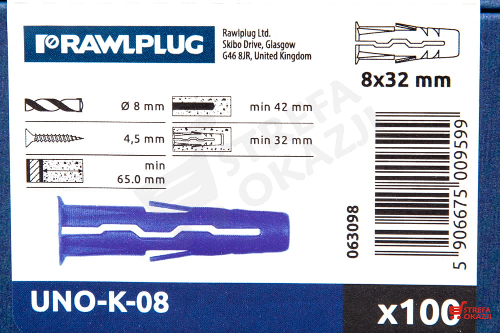 RAWLPLUG KOŁEK ROZPOROWY 8x32mm UNO-K-08 UNIWERSALNY 100szt