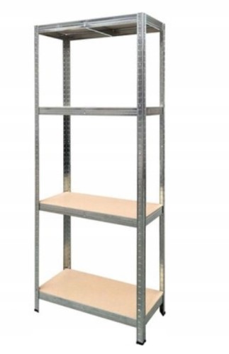 Regał metalowy z półkami wciskanymi z płyty MDF. Regał łatwy do samodzielnego bezśrubowego montażu. Składa się z 4 półek, każda o wytrzymałości do 100 kg. Regał wykonany z ocynkowanej stali. Doskonale spełnia swoją rolę jako element dekoracyjny w nowoczesnych pomieszczeniach mieszkalnych, ale również w piwnicach, garażach, domkach ogrodowych czy spiżarniach.