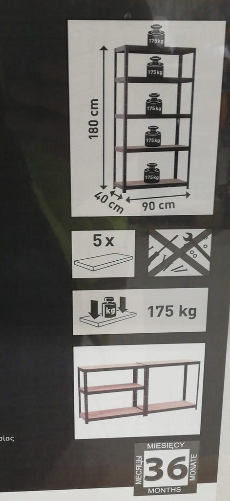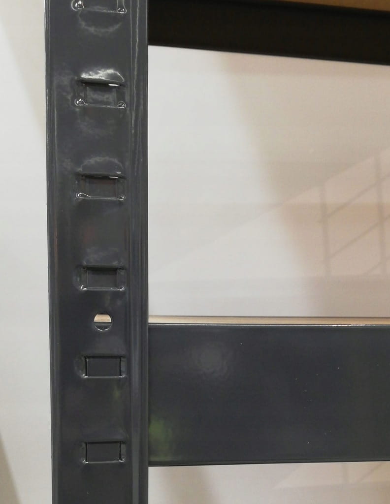 Regał metalowy z półkami z płyty HDF składa się z 5 półek każda o wytrzymałości do 175 kg. Wykonany z blachy czarnej malowanej proszkowo w kolorze RAL 7024, ciemnym szarym. Stabilny i bardzo łatwy w montażu, detale montowane są w systemie wciskanym. Regał świetnie sprawdzi się w każdym gospodarstwie domowym jak i w przestrzeniach magazynowych. Doskonale spełnia swoją rolę jako element dekoracyjny w nowoczesnych pomieszczeniach mieszkalnych, ale również w piwnicach, garażach, domkach ogrodowych czy spiżarniach.