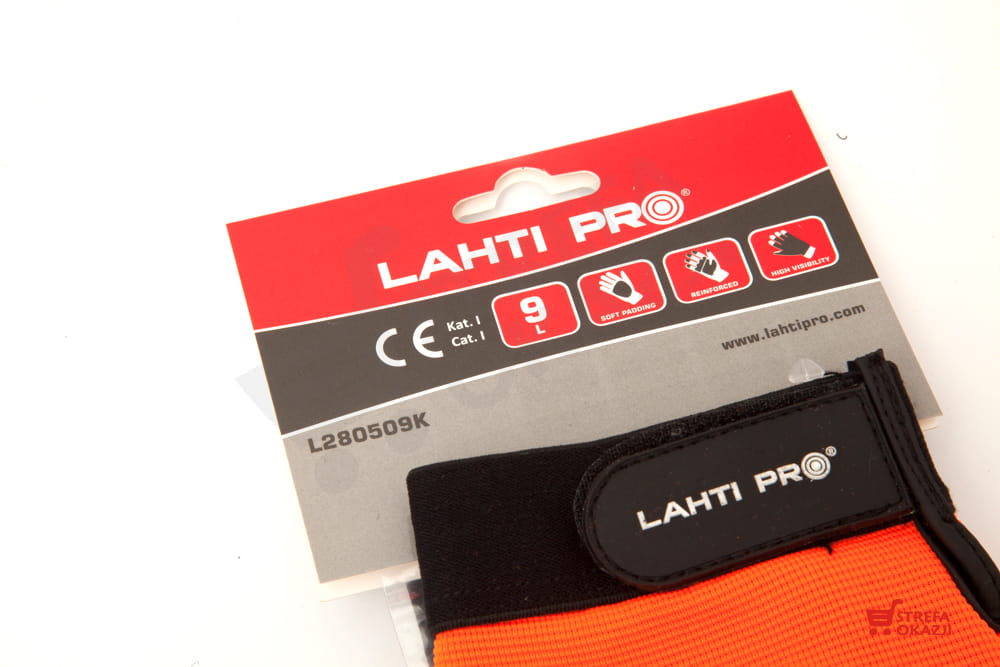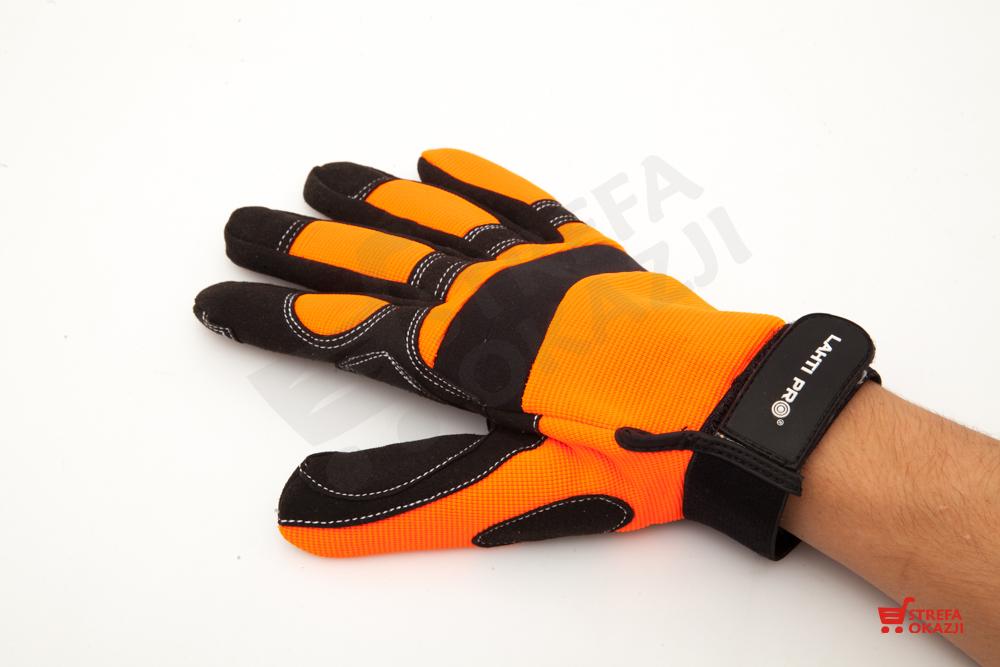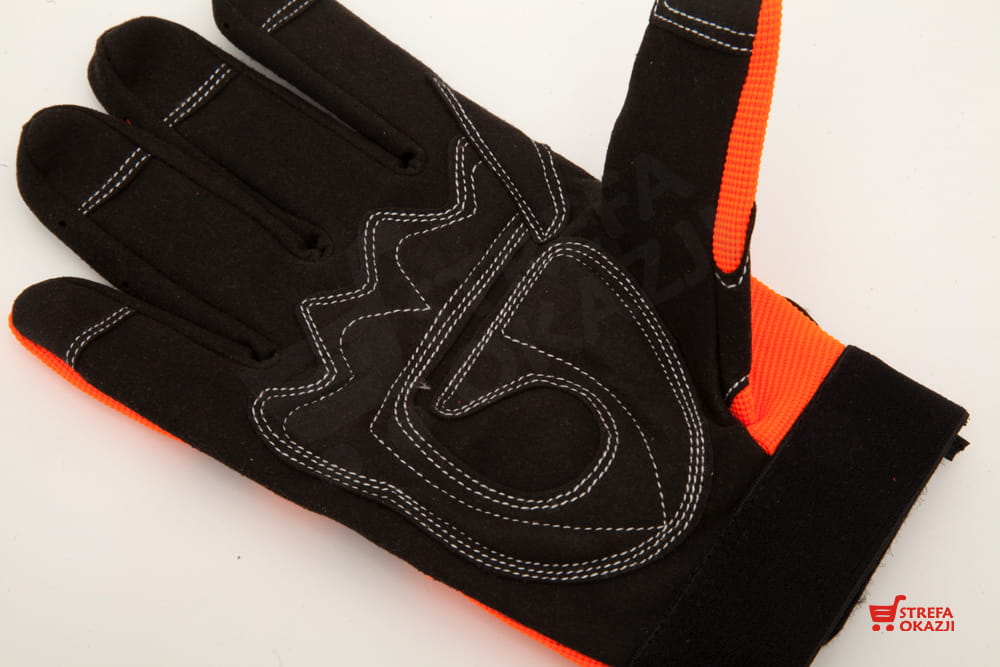 Rękawice wykonane z materiału o podwyższonej widoczności.