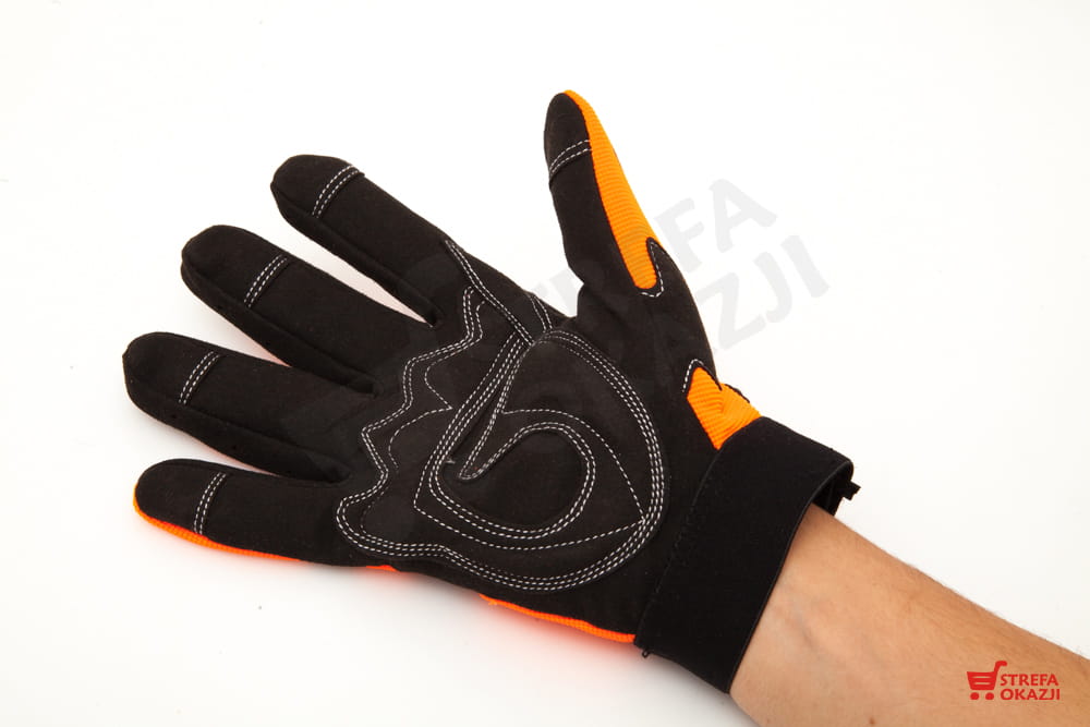 Rękawice wyposażone w miękką poduszkę na części chwytnej chroniącą przed odciskami i wibracjami.