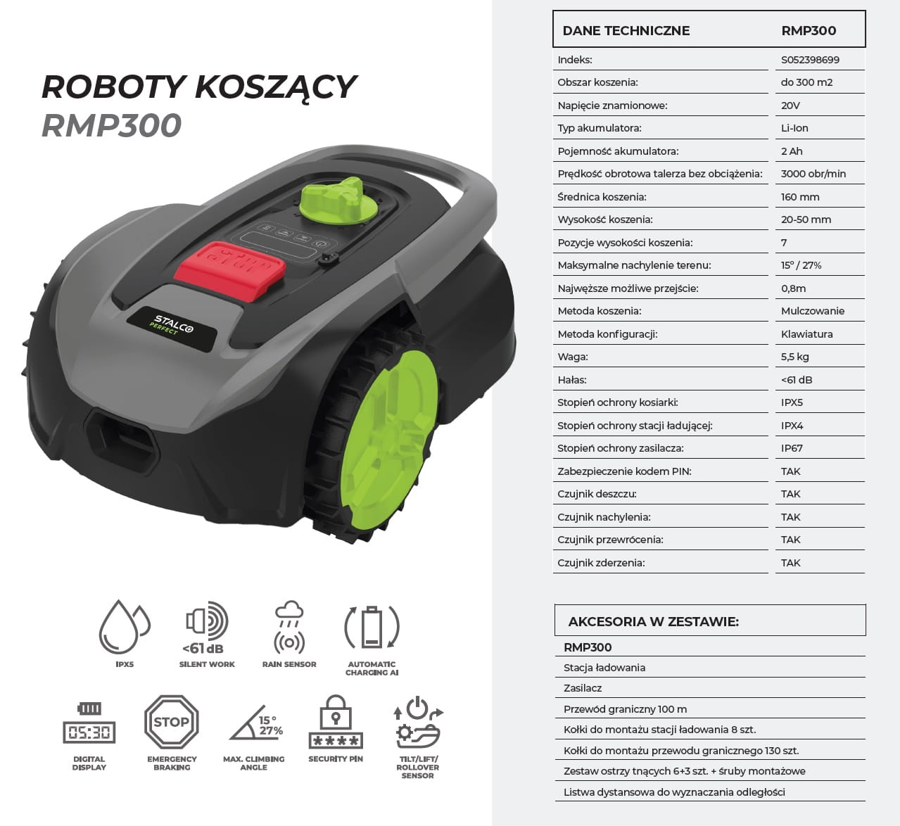 ✅ urządzenie RMP300 to nowoczesny robot koszący marki Stalco Perfect oferujący idealny stosunek jakości, parametrów pracy oraz atrakcyjnej ceny