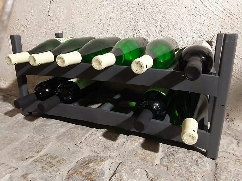 Modułowy stojak na wino (na tej aukcji kupujesz 4 moduły). Pojedynczy moduł jest w stanie pomieścić 6 butelek wina i może być przechowywany gdzie tylko chcesz! Moduły można ze sobą łączyć tworząc wysokie regały (maksymalnie 12 modułów). Dodatkowo każdy z modułów został wyposażony w system AppmyBox pozwalający skatalogować zawartość piwniczki w aplikacji na smartfonie.