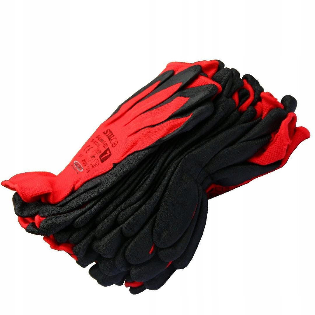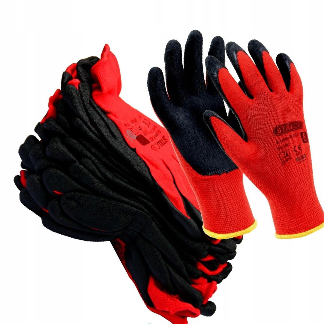 Rękawice robocze ochronne BHP do ogrodu STALCO poliester 10 czerwone 12 par