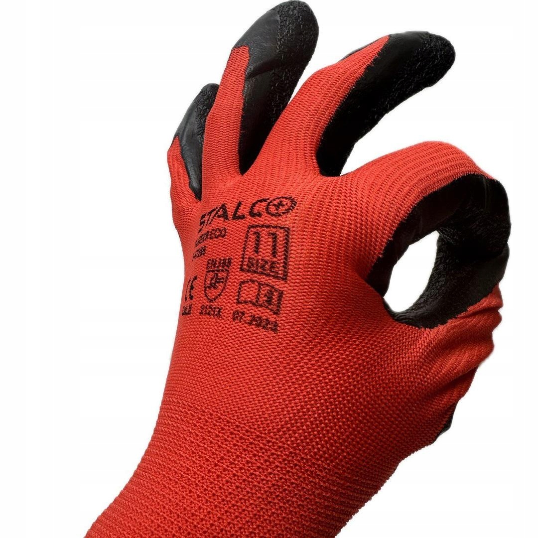 Rękawice Poliestrowe "S-Latex R EcoSTALCO służą do ochrony rąk, sąśrodkiem ochrony inndywidualnej , należącego do kat II.
