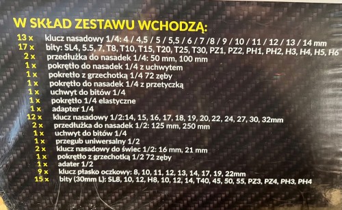 - 1x pokrętło do nasadek 1/4 z uchwytem
