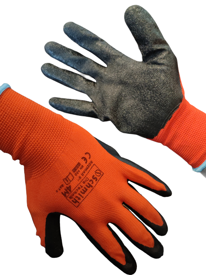Rękawice powlekane lateksem o porowatej strukturze zwiększającym odporność na przecieranie i podwyższającym przyczepność