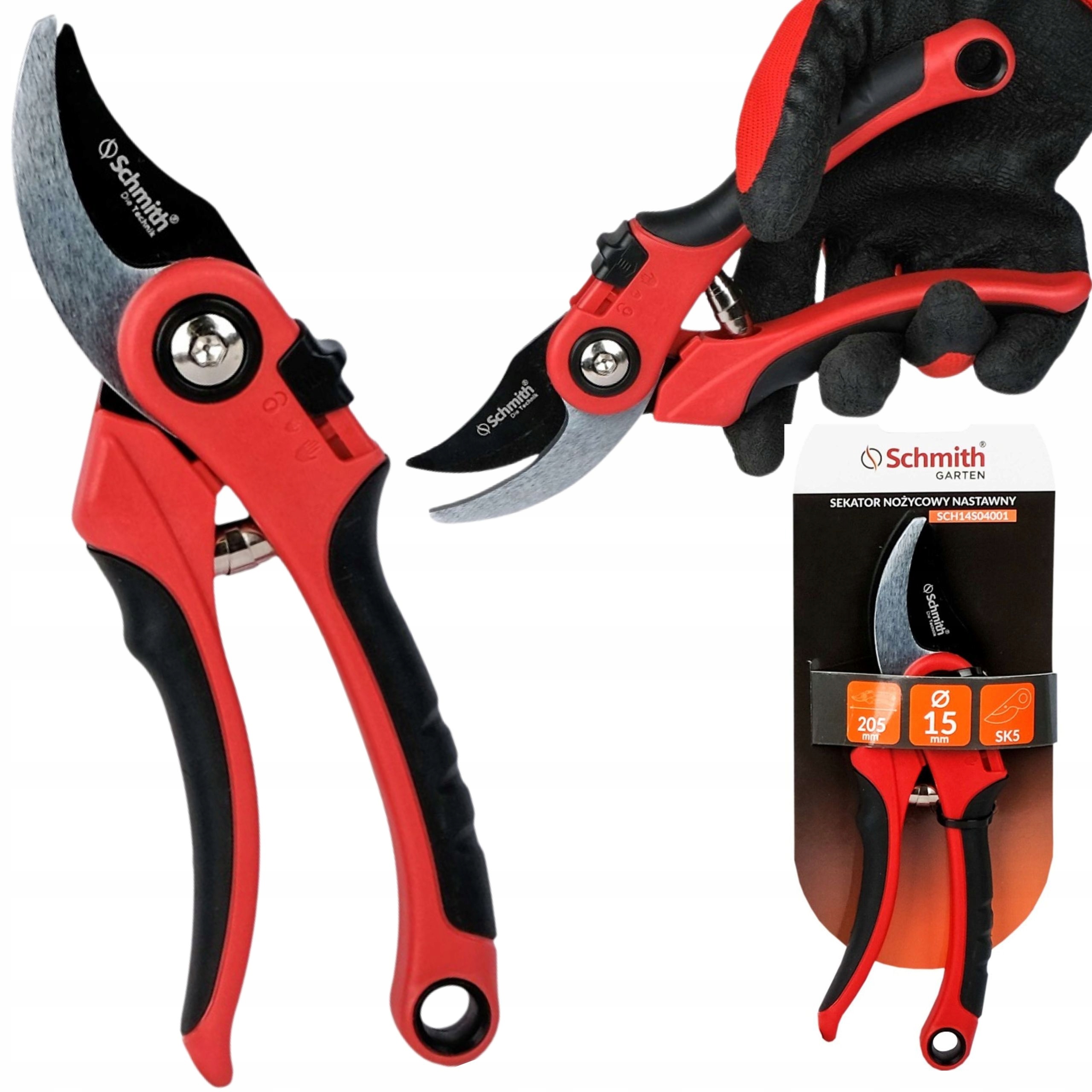 SEKATOR OGRODOWY NOŻYCOWY NASTAWNY RĘCZNY 205mm DO GAŁĘZI KRZEWÓW SCHMITH