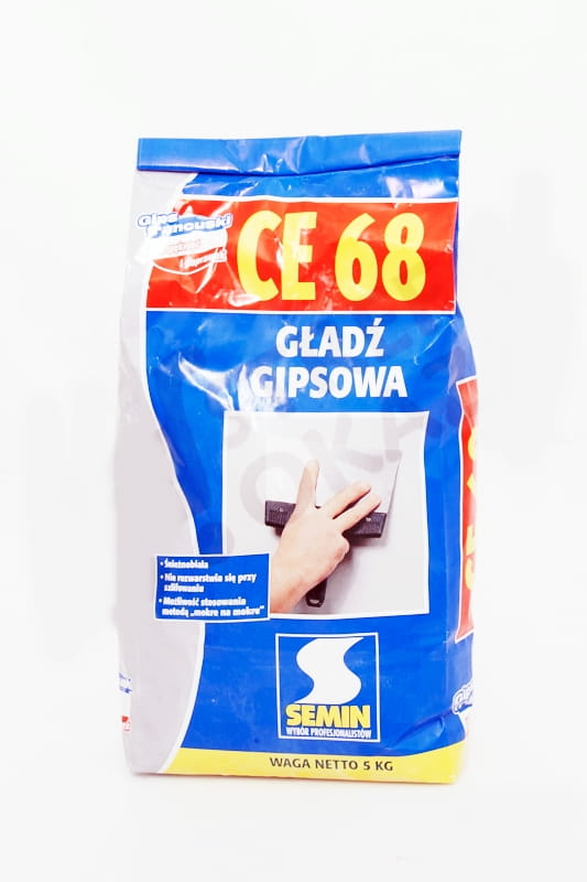 CE 68 Służy do wstępnego i ostatecznego wyrównywania podłoży wewnątrz budynku. Tworzy solidną niepylącą powierzchnię, o wysokim nasyceniu bieli. Idealna pod wszelkiego rodzaju farby. Służy także do wypełniania niewielkich uszkodzeń powierzchni ścian lub sufitów oraz do łączenia płyt g-k jako ostateczna warstwa. Możliwość stosowania "mokre na mokre". Nie rozwarstwia się przy szlifowaniu.