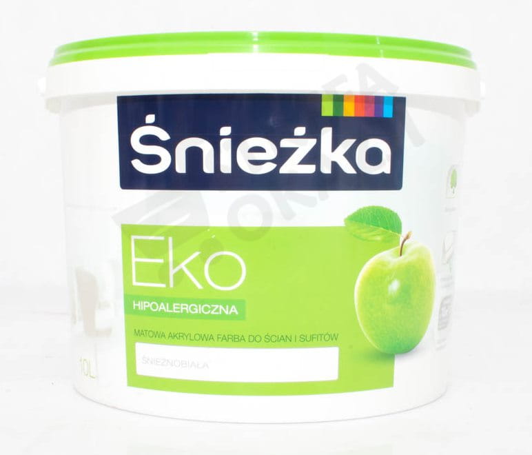 ŚNIEŻKA EKO Śnieżnobiała jest zawiesiną pigmentów i wypełniaczy w wodnej dyspersji żywicy akrylowej z dodatkiem środków wspomagających i uszlachetniających.