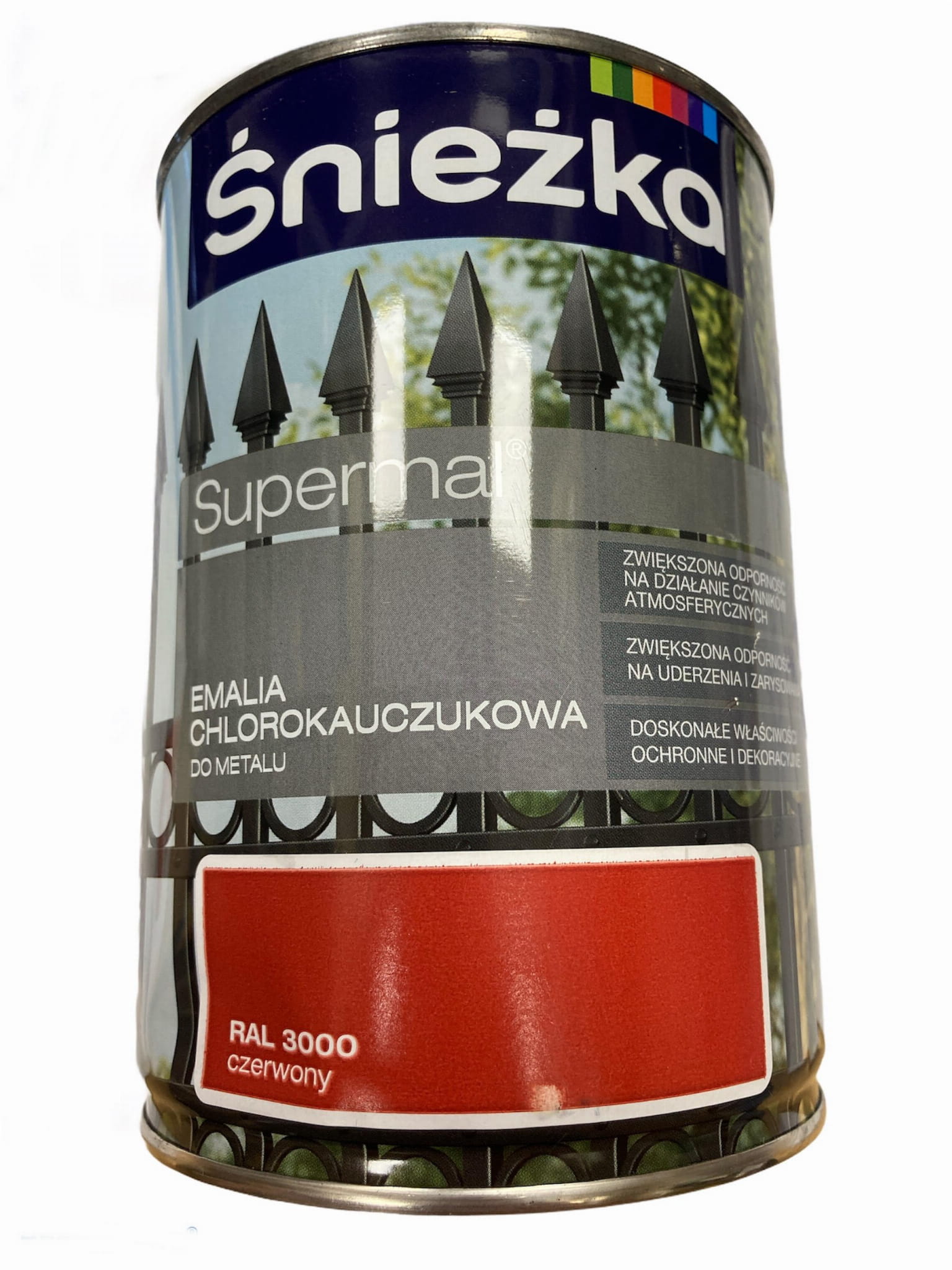ŚNIEŻKA SUPERMAL EMALIA CHLOROKAUCZUKOWA DO METALU CZERWONY 0,9L RAL3000