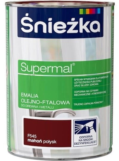 SUPERMAL® Emalia olejno-ftalowa stosowana jest do dekoracyjno-ochronnego malowania drewna, materiałów drewnopochodnych, tynków oraz elementów stalowych i żeliwnych użytkowanych wewnątrz i na zewnątrz pomieszczeń, takich jak: okna, drzwi, meble, ogrodzenia, lamperie itp. Polecana do stosowania w pomieszczeniach mieszkalnych, przeznaczonych na stały pobyt chorych w budynkach służby zdrowia oraz przeznaczonych na stały pobyt dzieci i młodzieży w budynkach oświaty, a także w pomieszczeniach przeznaczonych do przechowywania produktów żywnościowych (bez bezpośredniego kontaktu z żywnością).