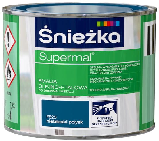 SUPERMAL® Emalia olejno-ftalowa stosowana jest do dekoracyjno-ochronnego malowania drewna, materiałów drewnopochodnych, tynków oraz elementów stalowych i żeliwnych użytkowanych wewnątrz i na zewnątrz pomieszczeń, takich jak: okna, drzwi, meble, ogrodzenia, lamperie itp. Polecana do stosowania w pomieszczeniach mieszkalnych, przeznaczonych na stały pobyt chorych w budynkach służby zdrowia oraz przeznaczonych na stały pobyt dzieci i młodzieży w budynkach oświaty, a także w pomieszczeniach przeznaczonych do przechowywania produktów żywnościowych (bez bezpośredniego kontaktu z żywnością).