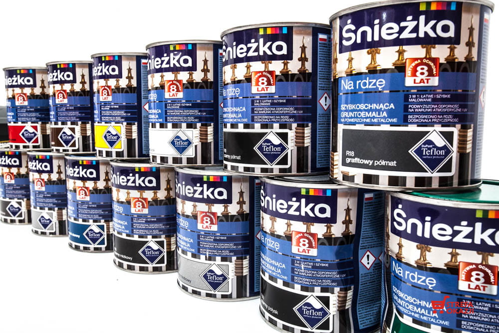 Śnieżka na Rdzę to szybkoschnąca gruntoemalia zabezpieczająca powierzchnie stalowe i żeliwne przed korozją.