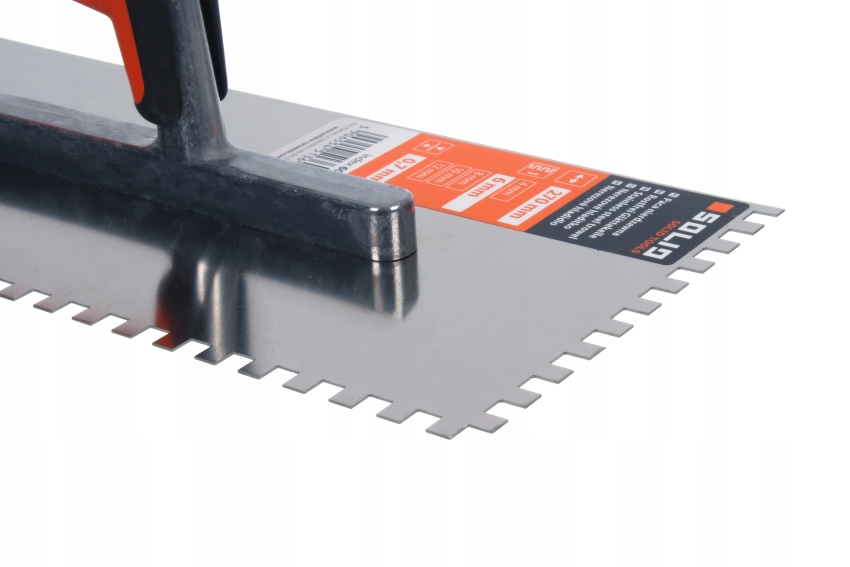 Paca wykonana jest ze stali nierdzewnej, kwasoodpornej o grubości 0,7mm. Gryf pacy wykonany jest z aluminium. Uchwyt wykonany jest dwukomponentowego tworzywa sztucznego, dzięki czemu idealnie leży w dłoni, zapewnia pewny uchwyt i nie ślizga się podczas pracy. Paca przeznaczona jest rozprowadzania klejów i zapraw klejowych.