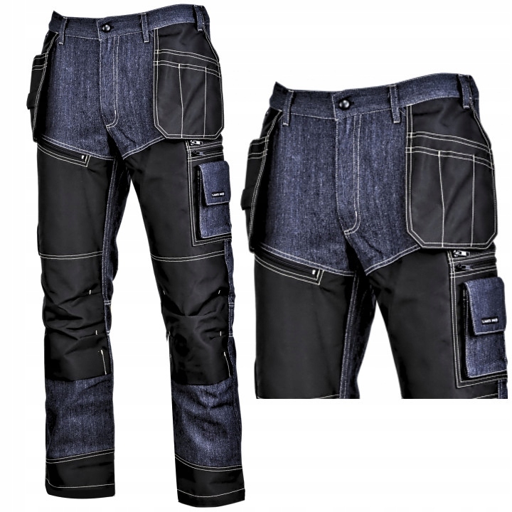MATERIAŁ: 60% bawełna, 20% poliester, 20% rayon. 16 kieszeni, w tym 3 zamykane na suwak. Praktyczne kieszenie monterskie. Kieszeń na telefon komórkowy. Podwójne szwy. Dodatkowe wzmocnienie szwów w kroku. Regulacja szerokości w pasie za pomocą gumki. Możliwość wydłużenia nogawek (+2,5 cm). Oczko na klucze. 6 szlufek na młotek/miarkę. Szlufki na pasek. Wzmocniony przód nogawek, kieszenie na ochraniacze kolan, kieszenie monterskie, kieszenie boczne oraz dół spodni materiałem (300D poliester) odpornym na przetarcia. Modny i ciekawy design. Wszywka identyfikacyjna. NORMA: EN ISO 13688