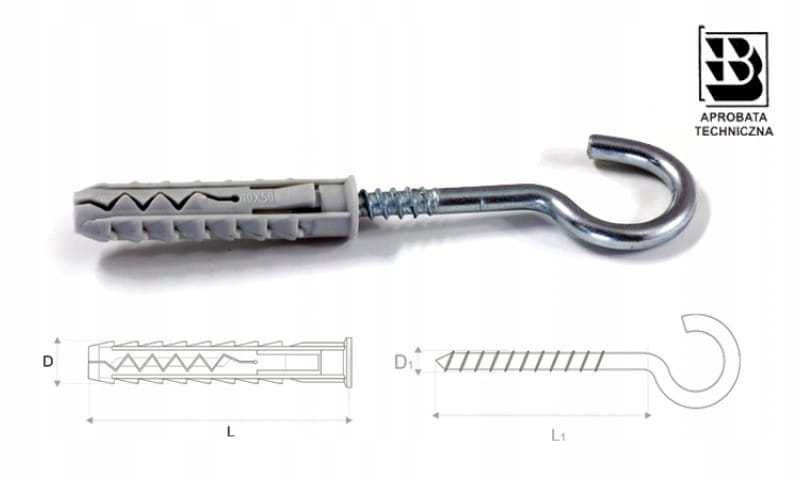 - Wkręt stalowy z hakiem sufitowym ocynkowany galwanicznie.