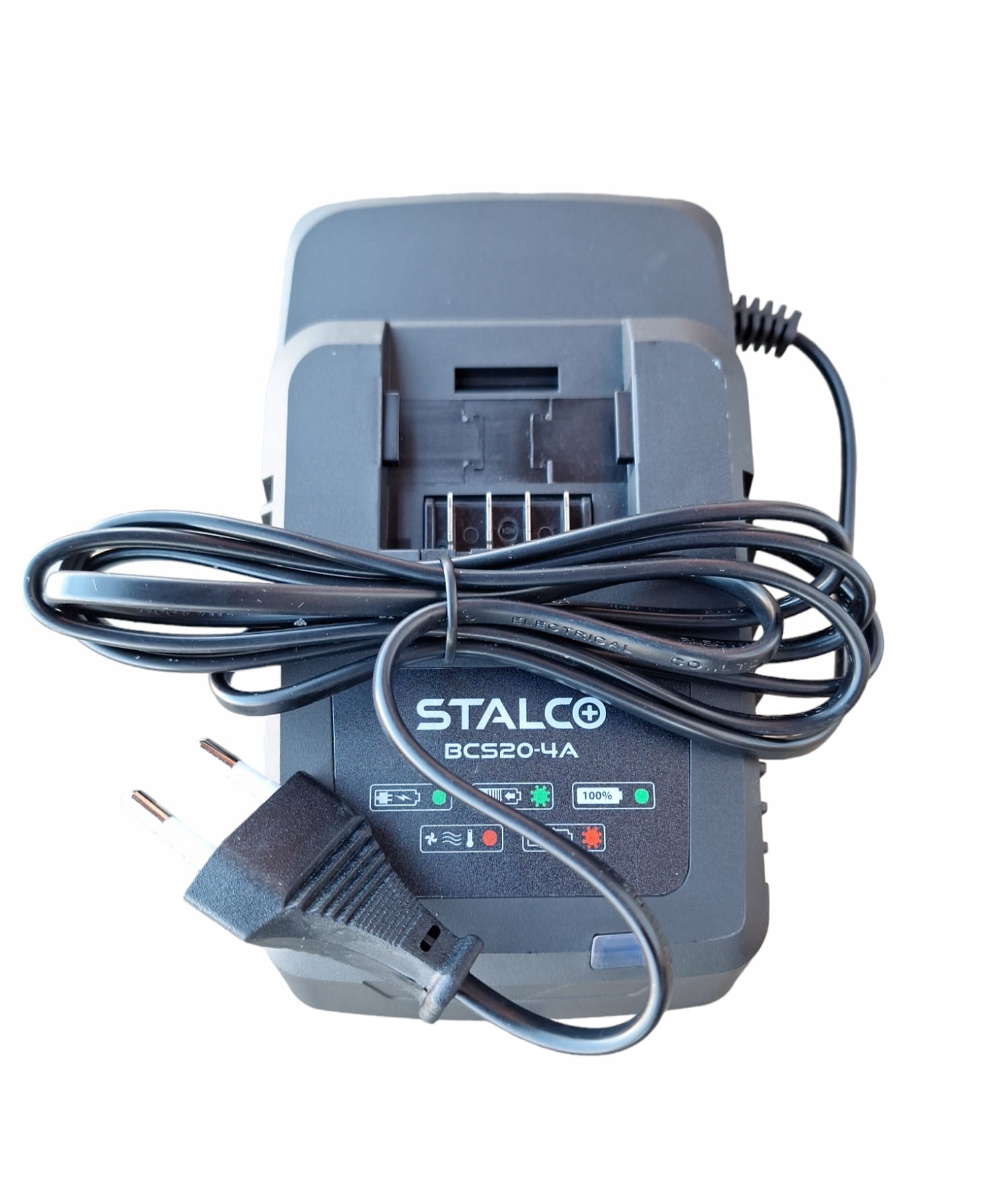 - Ładowarka 4A 20V 100W BCS20-4A to urządzenie przeznaczone do prac z urządzeniami akumulatorowymi STALCO.