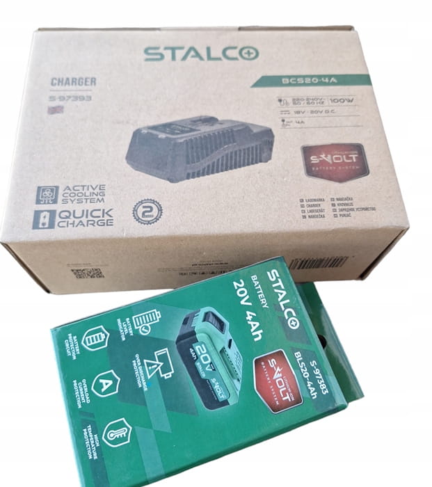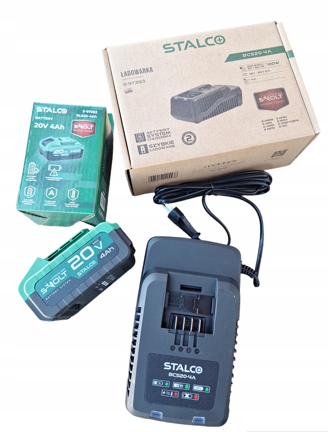 ŁADOWARKA 4A 20V 100W BCS20-4A STALCO S-97393 + 1X AKUMULATOR 4AH SYSTEM S-VOLT
