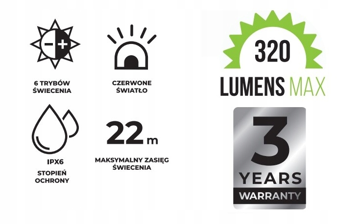 - Moc świetlna: do 320 lm – wszechstronne oświetlenie na różne potrzeby.