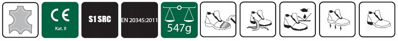 Buty wyposażone w lekki i wytrzymały podnosek z kompozytu. Podnosek chroniący palce przed uderzeniem z energią 200J.