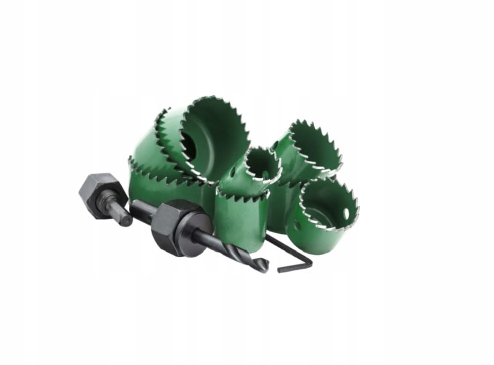 Otwornice do drewna zestaw 11 elementów z zakresu 19-64 + adaptery i imbus