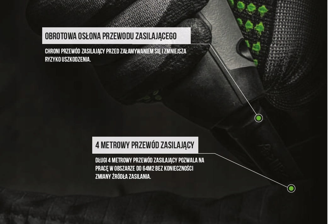 PŁYNNA REGULACJA PRĘDKOŚCI - pozwala precyzyjnie dostosować prędkość obrotową urządzenia do wykonywanej pracy.