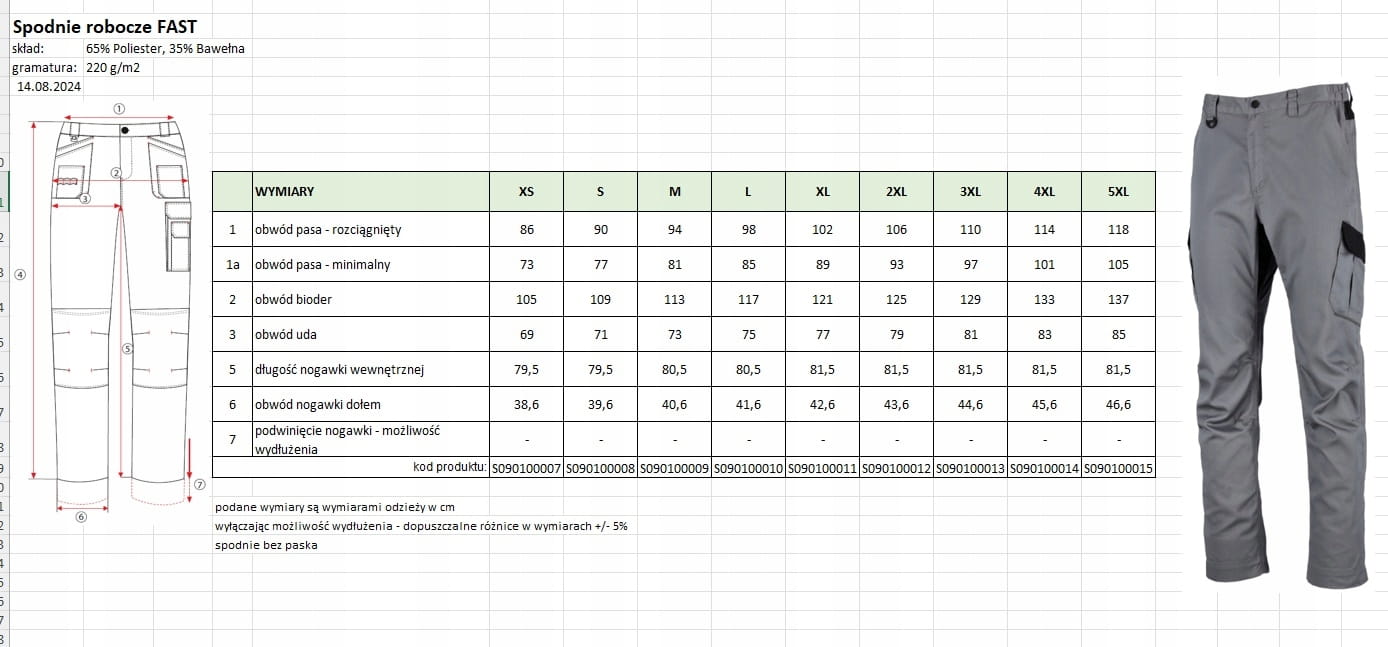STALCO SPODNIE ROBOCZE FAST SZARE ROZMIAR 4XL