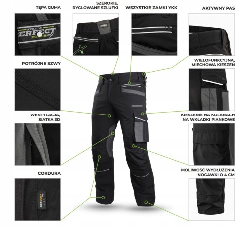 Odzież robocza dedykowana najbardziej wymagającym użytkownikom. Już na pierwszy rzut oka zaskakuje modną stylistyką i estetycznym wykonaniem. Ubiór powstał przy współpracy z profesjonalistami z branż dla których spodnie są dedykowane, dlatego każdy szczegół idealnie spełnia swoją funkcję.