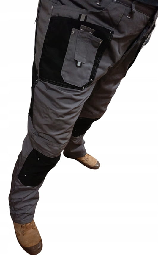 W trudnych warunkach roboczych trwałość spodni zapewniają rygle umieszczone w newralgicznych miejscach. Znalazły się w obrębie rozporka, kroku, atakże kieszeni i szlufek. Odporność na rozerwanie odzieży uzyskano dzięki potrójnym szwom i wstawkach materiału OXFORD 600D. Wzmocnione tym materiałem zostały kieszenie na kolanach, kieszonki ztyłu i z przodu w okolicach pasa.